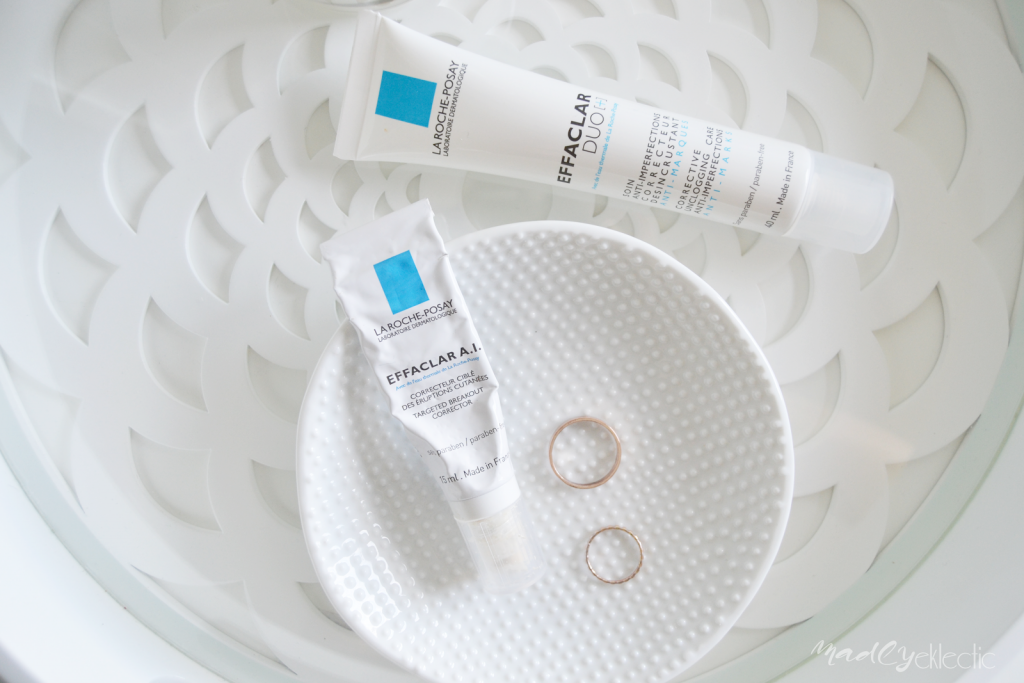 + ACNÉ- Soy fiel a Effaclar Ai y Duo + de La Roche Posay. Ai para minimizar el alien inoportuno -es lo más efectivo que he probado nunca- y Duo + para pequeños brotes o para el rostro en general cuando he tenido algún brote, a modo de mantenimiento o cuando me noto la piel más regulín.