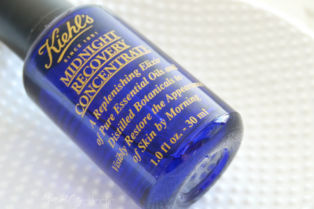+ Midnight recovery concentrate de Kiehls. Un must de la firma y también de mi tocador. Esos días que noto mi piel más cansada y fatigada aplico un par de gotas por la noche de este serum y a la mañana siguiente mi piel amanece mejorada, descansada y como «reparada» y es que este suero promete equilibrar la barrera lipídica de la piel mientras dormimos gracias a la lavanda, a la rosa mosqueta y al escualeno entre otros.