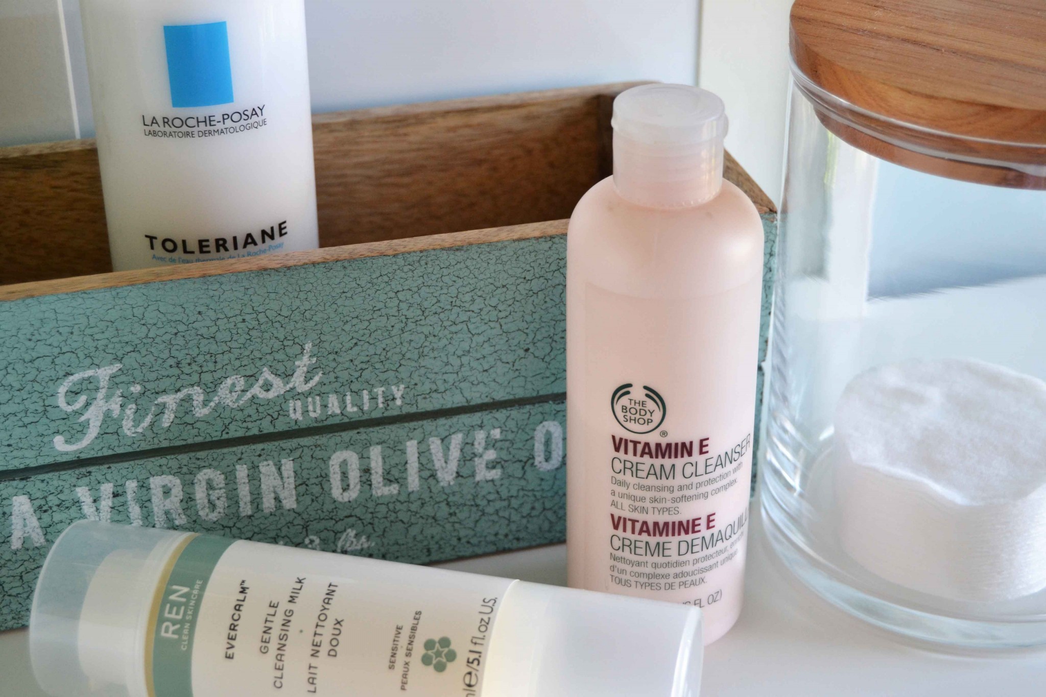 LIMPIEZA- Por la mañana uso cualquiera de estos limpiadores que os enseño, mi favorito es el Toleriane de la Roche pero el Evercalm de Ren ha sido una muy grata sorpresa al igual que el de Vitamina E de TBS. Por las mañanas evito el contacto con el agua y opto por limpiadoras en textura leche/crema, fluidas, muy suaves, con fórmulas depuradas perfectas para mi piel sensible. Las aplico con un algodón por rostro y cuello.