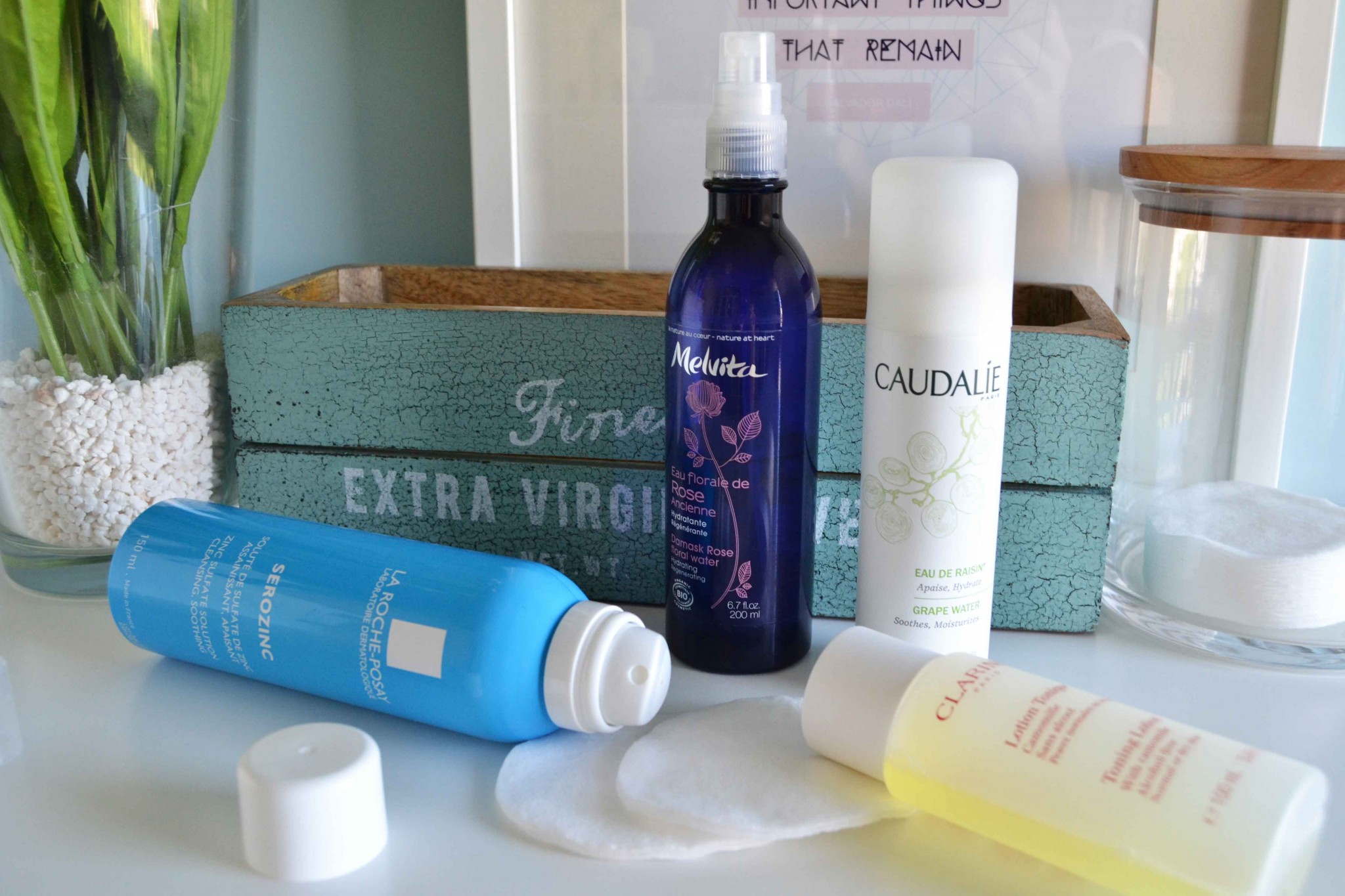 Como hidratantes actualmente alterno el agua de rosas de Melvita, el tónico de camomila de Clarins y el agua de uva de Caudalie.