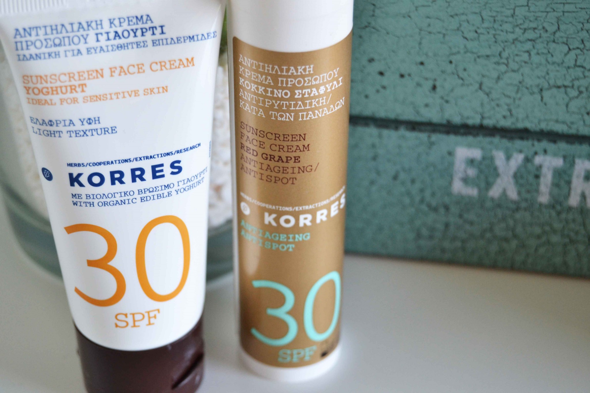 SPF– Y finalmente la protección solar. En este campo me queda bastante por aprender pero de momento me gustan mucho los protectores de Korres y Apivita. Siempre opto por los específicos para piel sensible y a diario por los que llevan además tratamiento antimanchas y me están dando muy buenos resultados. Alterno dos que son los que os muestro, el de yogur me flipa su olor pero resulta algo más pesado y denso así que cuando me maquillo uso el antimanchas a base de uva que es muy ligero y cómodo ya que incorpora dispensador.