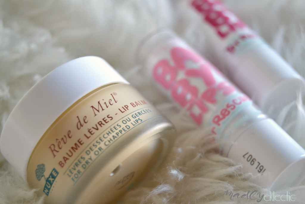 Y muy brevemente dos últimas decepciones: el Reve miel lip balm de Nuxe, un clásico en el tratamiento de los labios y que al principio de empezar a usarlo me gustó pero con el tiempo no sé si porque me he acostumbrado o porque lleva meses abierto, lo cierto es que no me hace nada, sólo me aporta una capa mantecosa y espesa a modo de película que hidrata muy superficialmente pero ni repara ni hidrata en profundidad. No me queda otra que incluirlo en este post junto a los recientes Baby Lips Dr rescue de Maybelline, 12 horas de hidratación intensa? en serio? ni mucho menos, acondicionan ligeramente el labio y aportan un colorcillo bastante majo pero hasta ahí puedo contar. No sustituyen a mis adorados Hurraw balm ni de lejos…..