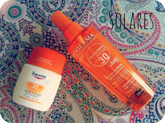 Fundamental y muy necesaria la protección solar. Durante todo el año en el rostro uso Heliocare Fx 50, sin embargo este verano he cambiado a Eucerin Fluído Matificante SPF30. Me cuesta muchíiiisimo ponerme morena y tanto si me maquillo como si no ayuda a controlar muy bien los brillos derivados de las altas temperaturas veraniegas.