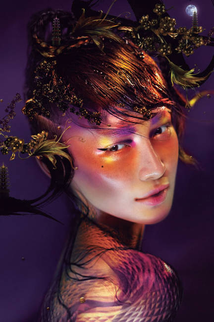 En esta ocasión Chen se inspira en la mitología china que da pie a esta colección y recurre a la conocida leyenda de la serpiente blanca, una leyenda muy famosa en China y con múltiples versiones. Chen opta por convertir a la modelo en el personaje principal de la historia y recrea en su melena recogida la torre de la montaña del trueno, en la que la joven queda atrapada en nombre del amor.